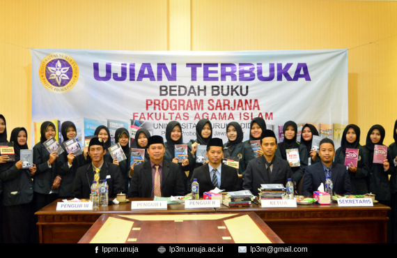 Universitas Nurul Jadid untuk kesekian kalinya menggelar ujian tugas akhir bedah buku di Ruang Meeting UNUJA pada 6 Agustus 2020. Ujian ini merupakan salah satu rangkaian dari kegiatan tugas akhir yang telah diresmikan UNUJA dalam 3 opsi, yakni Jurnal Ilmiah, Buku, dan Skripsi.