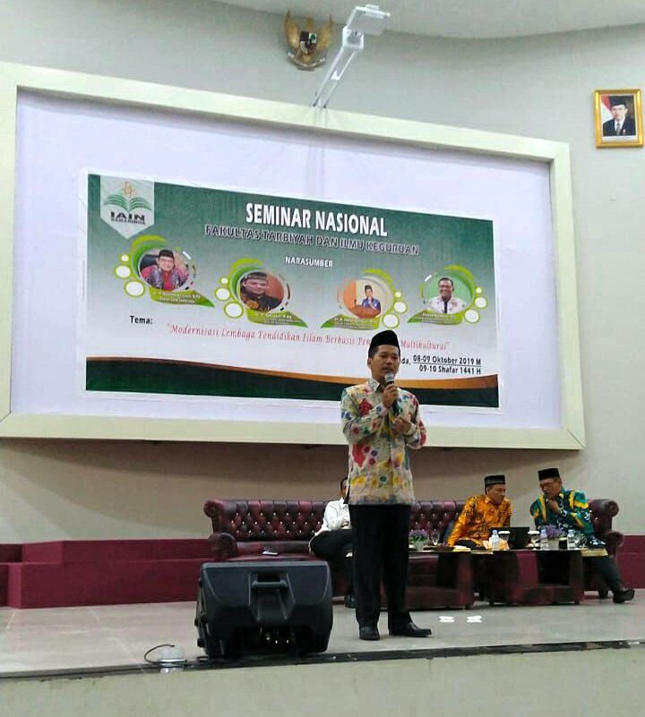 "Tantangan pendidikan multikulturalisme dewasa ini, mengancam integrasi bangsa indonesia. Diperlukan pemahaman yang menyeluruh terkait dengan benih disintegrasi, mulai dari munculnya berita HOAX, mendewakan Google, menjadikan popularitas sebagai guru dibandingkan dengan ahlinya". Ungkap Dr. KH. Hasan Baharun, M. Pd. pada sesi presentasi yang dilaksanakan di Aula Serbaguna IAIN Samarinda.