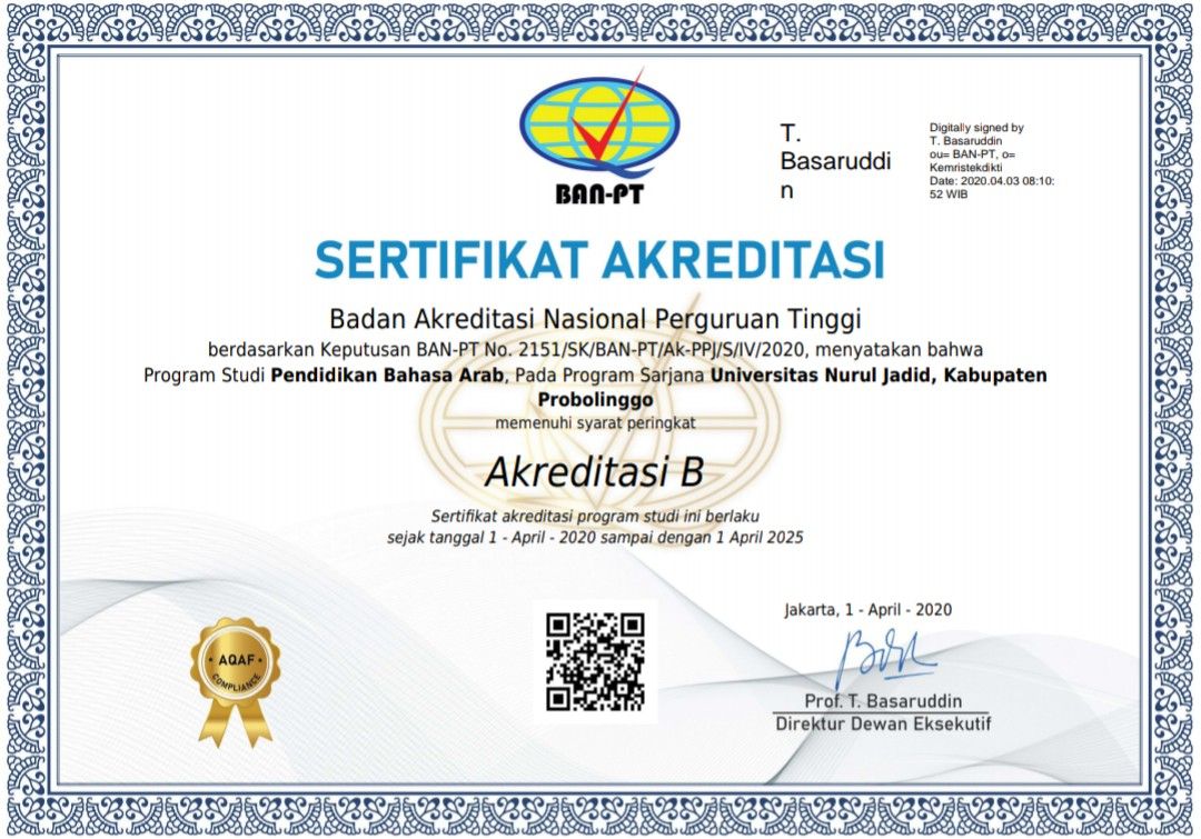 Tentu kami-Insha Allah-tetap berkomitmen untuk meningkatkan hasil akreditasi pada tahapan kualitas dan kategori yang lebih baik lagi serta berusaha tetap konsisten mengawal pendidikan bahasa Arab sesuai aturan dan pedoman yang berlaku pada era 4.0.   Â