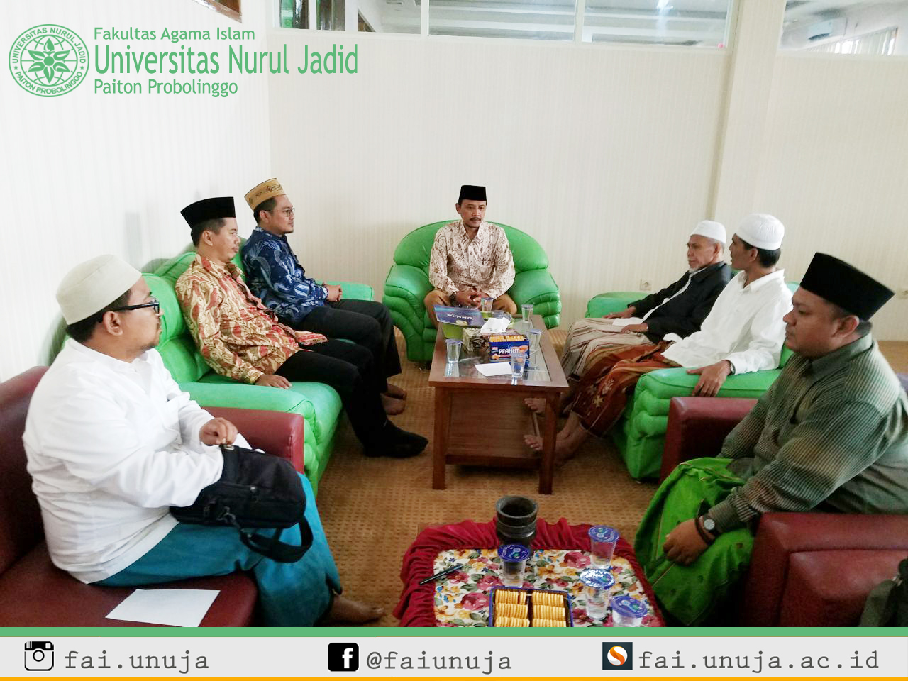Pada hari Ahad (22/7), Program Studi Ilmu Al-Qur’an dan Tafsir (IQT) Universitas Nurul Jadid Paiton Probolinggo mendapatkan tamu kehormatan dari pondok pesantren Nurul Islam, Kapongan Situbondo. Rombongan tamu kehormatan tersebut diterima langsung oleh Wakil Rektor I bidang Akademik, Dekan FAI dan Kaprodi IQT di Ruang Tamu Universitas Nurul Jadid.