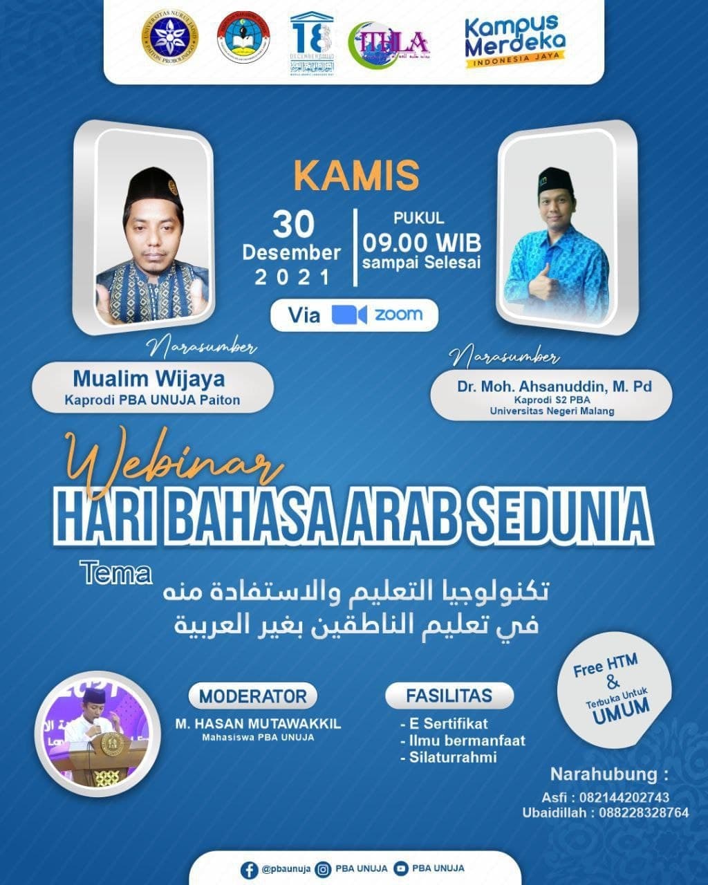 Perayaan Hari Bahasa Arab Sedunia tepatnya pada tanggal 18 Desember setiap tahunnya, namun panitia acara HBA Sedunia PBA UNUJA Paiton lebih memilih merayakannya di akhir tahun tgl 30 Desember 2021 sebagai bentuk dakwah di penghujung tahun yang manis "sanah helwah".